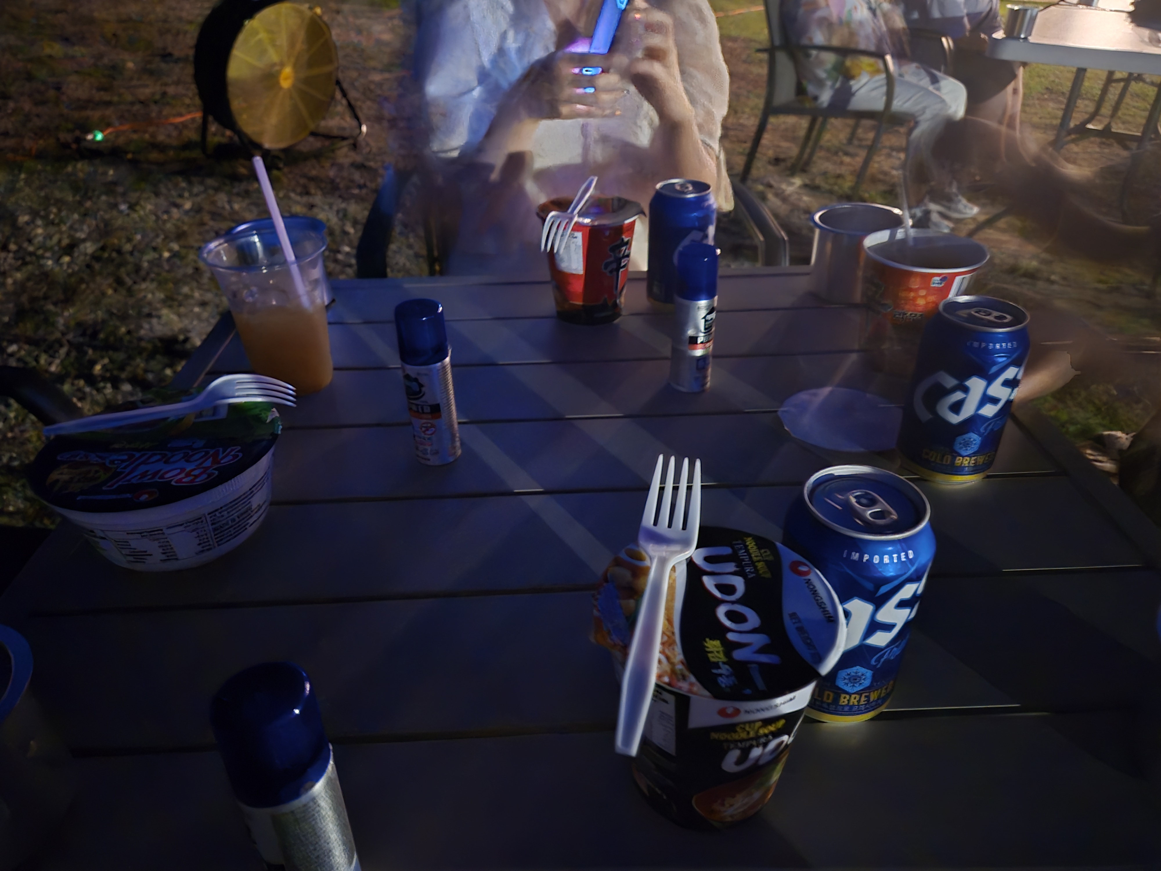 지정된 테이블에 앉아 간단하게 맥주와 라면도 즐길 수 있답니다. 늦은 밤이라 바람이 선선하게 부는 편이라 추위를 잘 타시는 분들이라면 긴 겉옷을 준비하시면 좋을 것 같아요. 또 모기가 많으니 꼭 모기 기피제를 준비해 주세요.