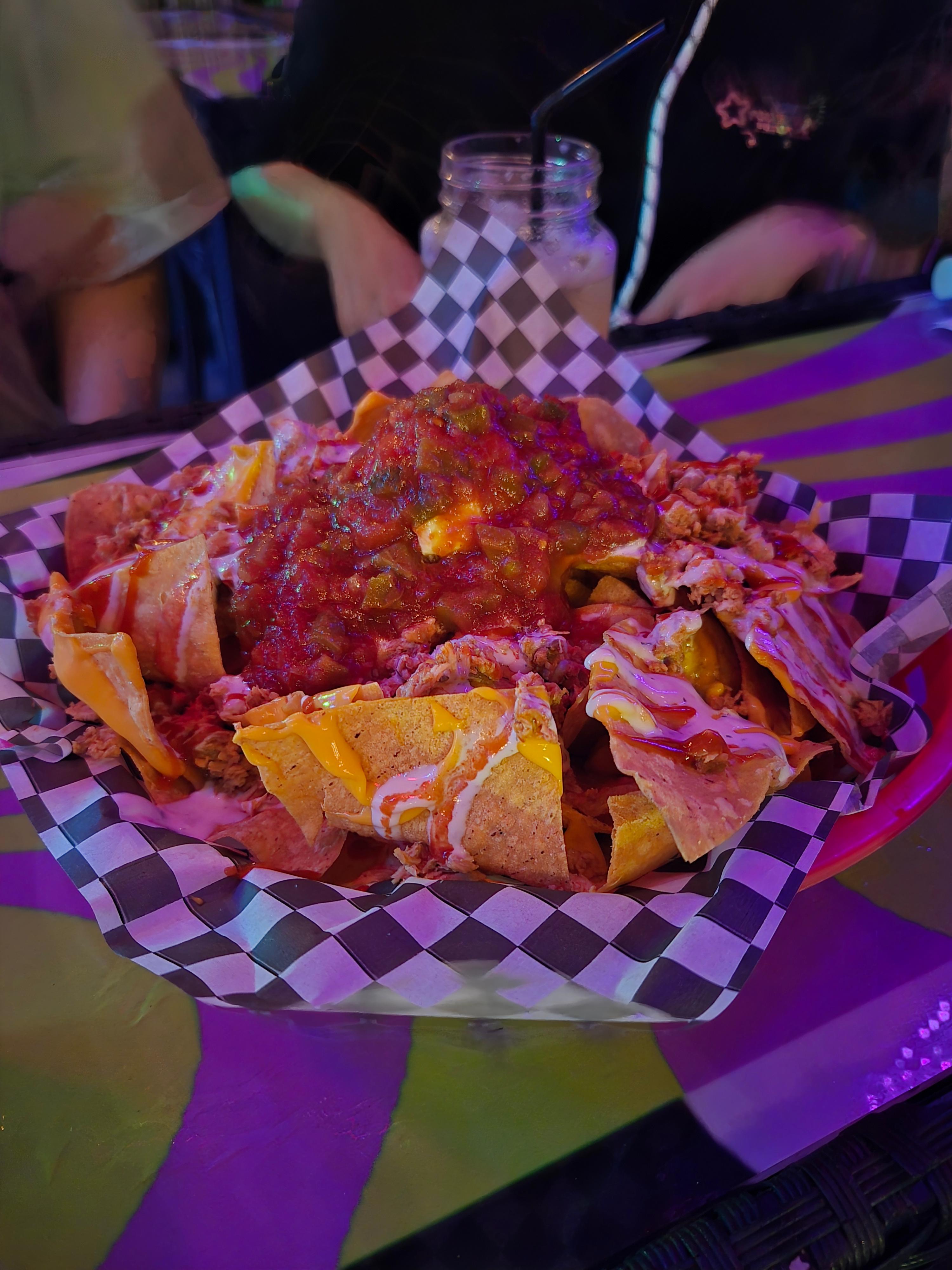 음료 외에 간단한 안주류도 주문이 가능한데, 나초, 프렌치프라이, 핫윙 등 다양한 메뉴가 준비되어 있어 간단한 식사도 가능하답니다. 저희는 'LAVA FLOW NACHOS'라는 이름의 메뉴를 주문했는데요. 나초칩에 칠리 비프, 사워크림, 살사까지 듬뿍 얹어서 주니 술안주로 정말 딱이더라고요.