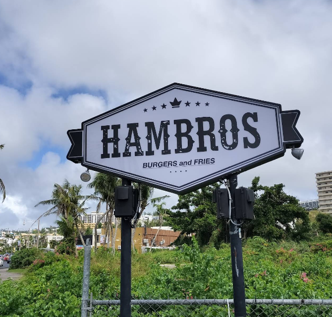 수제버거를 좋아하는 이들에게 ‘햄브로스(Hambros)’는 현지인과 여행객 모두에게 손꼽히는 버거 가게 중 하나인데요. 괌에는 많은 수제버거 가게가 있지만 상대적으로 호텔과 가깝기도 해서(걸어서 5분 거리) 선택했답니다.