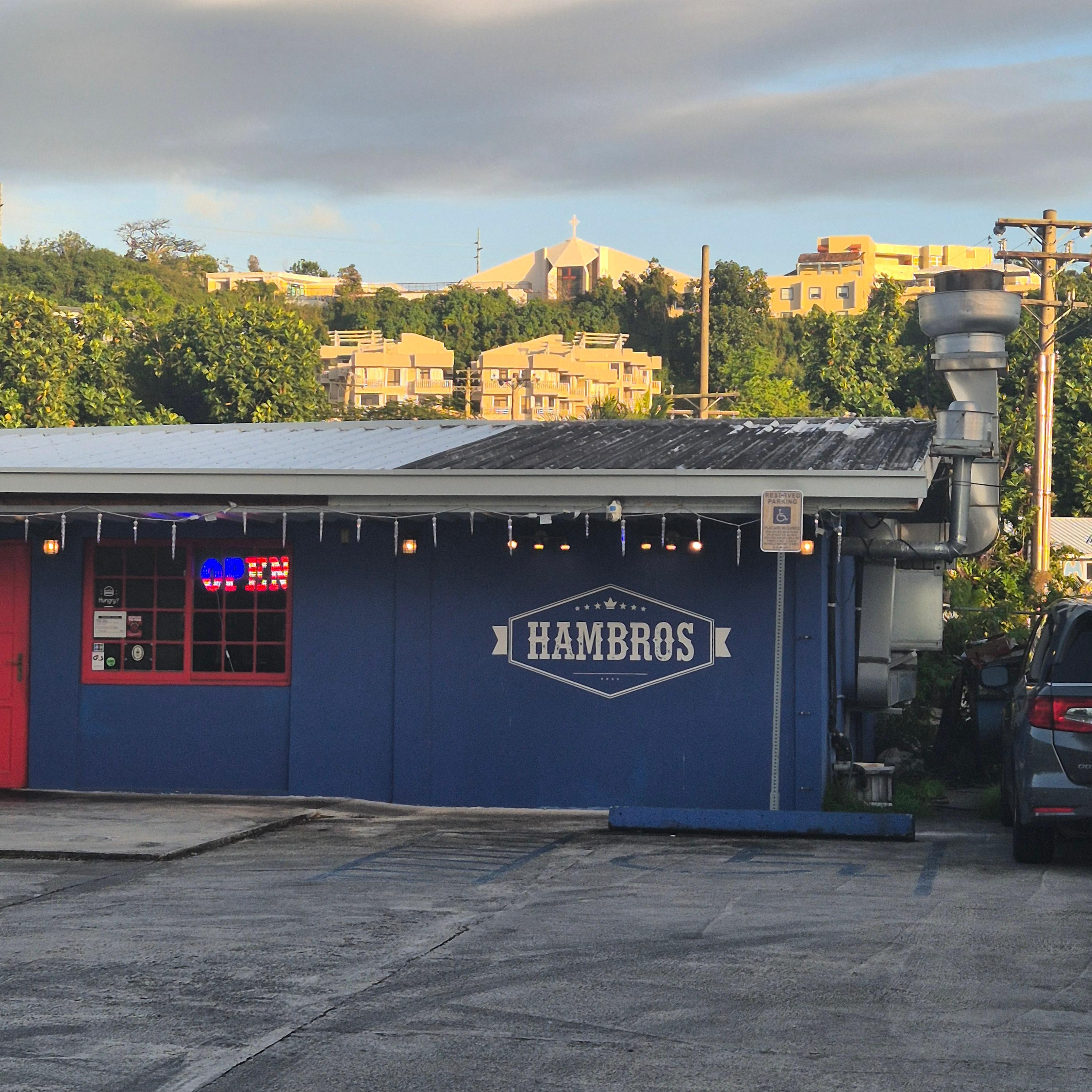 수제버거를 좋아하는 이들에게 ‘햄브로스(Hambros)’는 현지인과 여행객 모두에게 손꼽히는 버거 가게 중 하나인데요.  괌에는 많은 수제버거 가게가 있지만 상대적으로 호텔과 가깝기도 해서(걸어서 5분 거리) 선택했답니다.