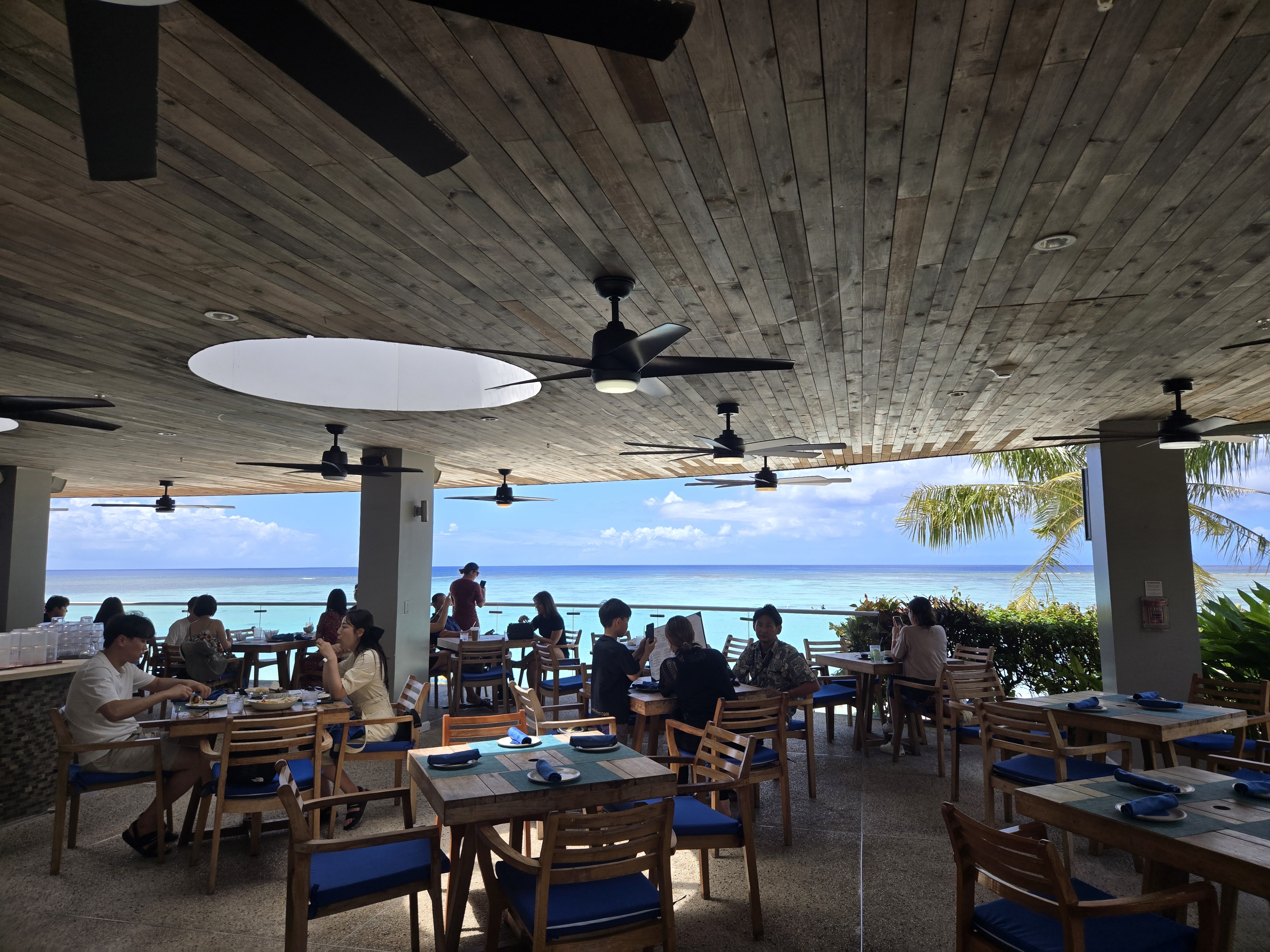 타시그릴의 가장 큰 장점은 바로 멋진 풍경이죠. 드레스 코드가 딱히 정해진 게 아니라서 두짓타니 호텔 수영장에서 수영을 즐기고 래시가드를 입은 채로 식사를 하시는 분도 종종 볼 수 있었어요.