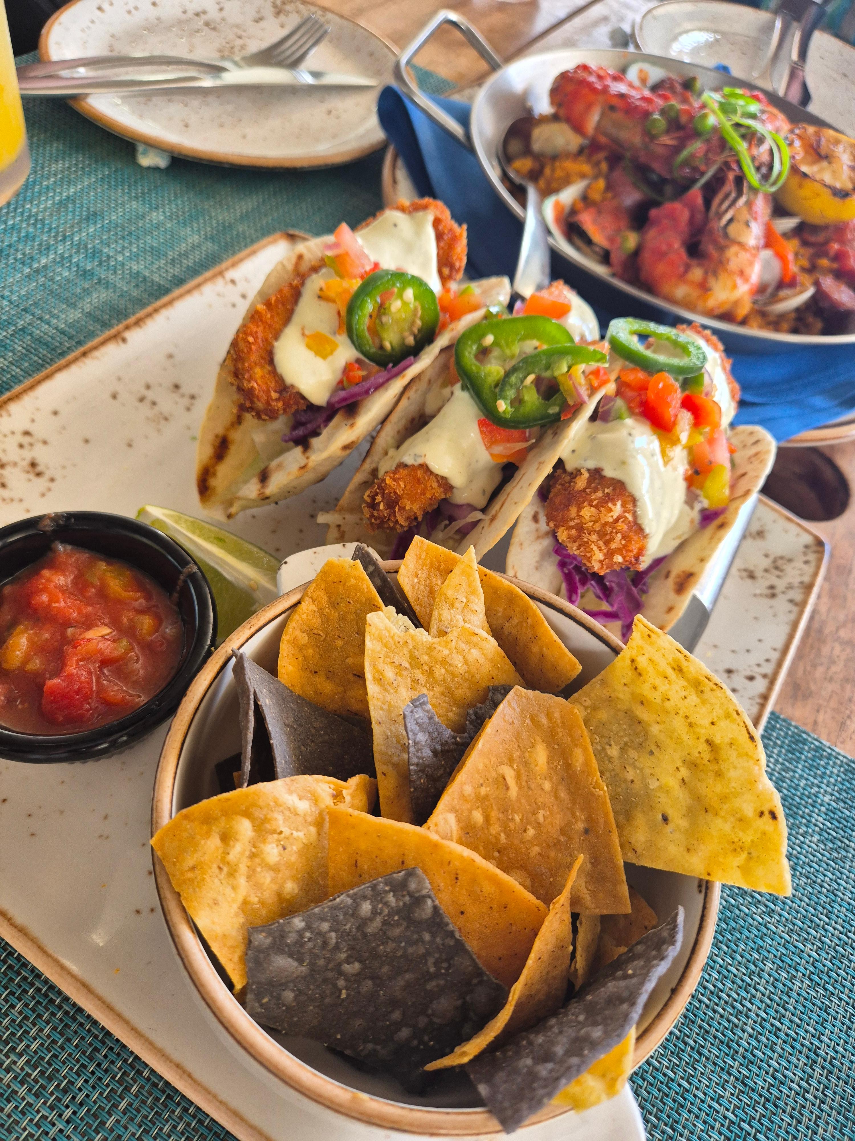 메뉴가 정말 다양하지만 저희는 참치 포케, 새우튀김, 타코, 로꼬모꼬, 빠에야를 시켰는데요. 전반적으로 간이 세지 않고 느끼하지 않아서 정말 맛있었답니다. 다만 양이 조금 작은 편이라 1인 1 메뉴보다는 여유롭게 1.2~1.5 메뉴를 시키는 걸 추천드려요.