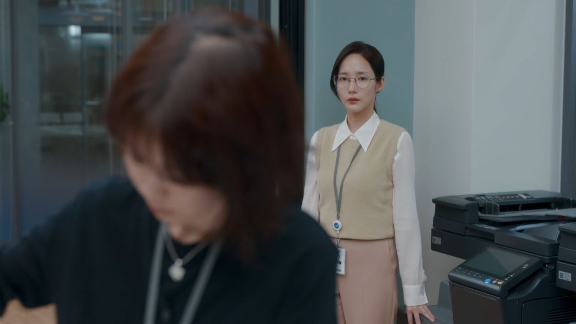 수민은 희원과 양대리가 지원과 가까워지는 모습을 보고 김경욱 과장에게 접근합니다. 그녀는 김 과장에게 자신의 정직원 전환을 도와달라고 부탁하죠.