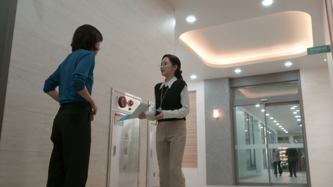 티슈를 찾으러 화장실에 온 지원은 갑작스럽게 생리가 터져 화장실에 갇힌 같은 팀 유희원 사원을 도와줍니다. 희원은 지원에게 고마움을 표시하죠. 누구라도 그랬을 것이라는 지원의 말에 희원은 방금 전 누군가에게 도움을 청했지만 무시받았다는 사실을 듣게 됩니다. (무시한 사람은 바로 수민이었죠)