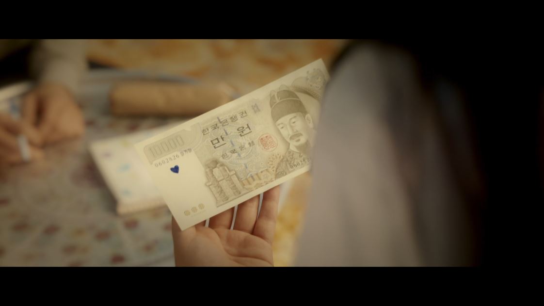 아직도 무엇이 꿈이고 무엇이 현실인지 헷갈리던 그녀는 주머니 속에서 만 원짜리 지폐를 보게 됩니다. 그건 택시기사가 돌려준 택시비였죠. 지폐에 남겨진 낙서를 본 그녀는 그것이 돌아가신 아빠였다는 사실을 눈치챕니다.