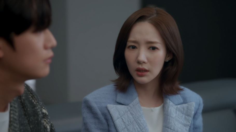 다음날, 박민환을 유혹하기 위해 지원은 빨간 하이힐을 신고 회사로 출근합니다. 그리고 민환이 보는 앞에서 지혁과 크게 다투죠. 민환은 지원이 지혁과 헤어지는 대가로 회장님으로부터 800억 원을 받았다고 착각하게 됩니다.