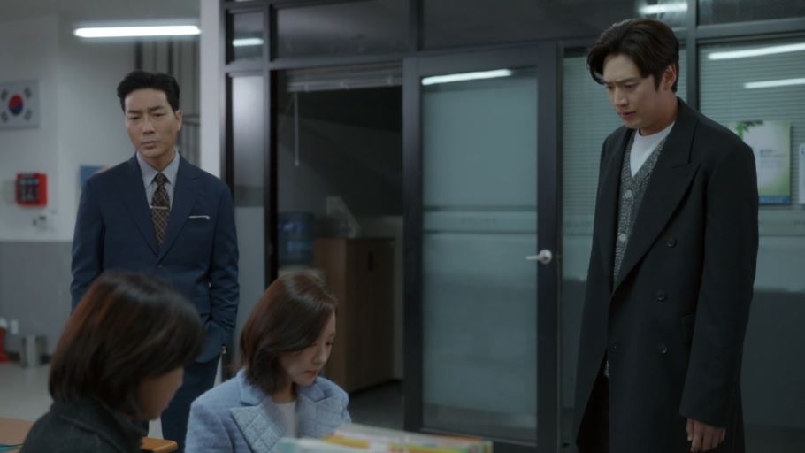 뒤늦게 소식을 들은 지혁과 석준이 찾아오고 석준은 자신이 주란의 변호를 도와줄 테니 지원과 지혁에게 오늘은 돌아가라고 말합니다.