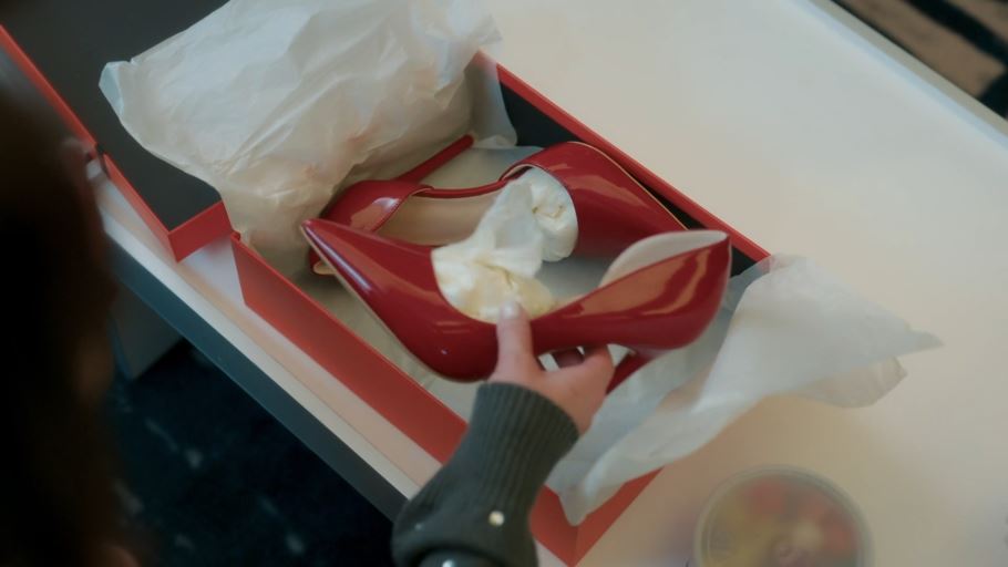 지혁은 유라의 비서로부터 민환과 유라가 이미 불륜 관계임을 알게 됩니다. 지혁은 비서를 통해 유라에게 빨간 하이힐과 사탕을 보내죠.