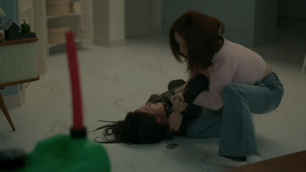 그리고 그 순간 수민이 나타나 전기충격기로 지원을 기절시킵니다. 수민은 지원을 죽이기 위해 시너를 구매하고 지원이 혼자 있는 틈을 타 그녀를 찾아온 것이죠.