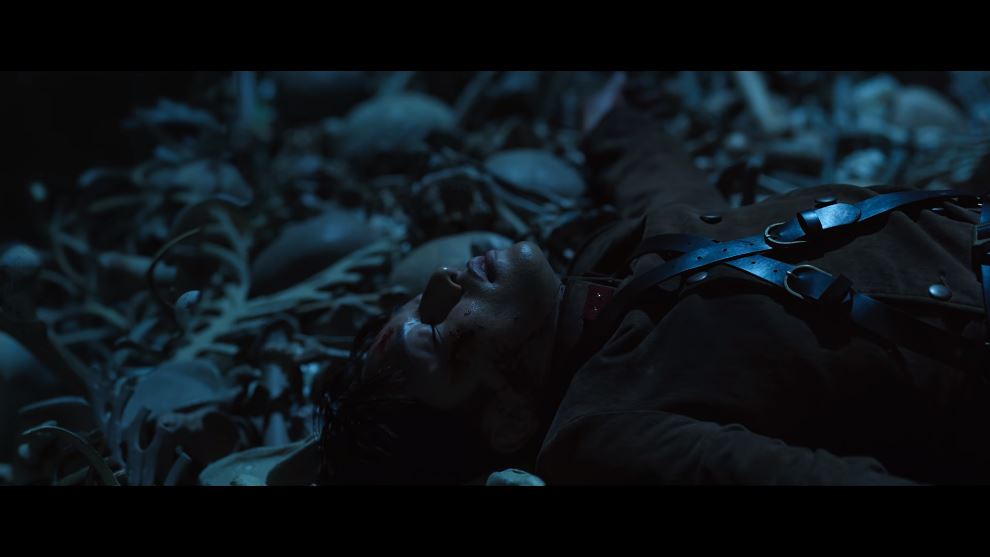 한참을 도망치던 태상은 환풍구와 연결된 구멍에 빠져 그대로 추락하고 맙니다. 그가 떨어진 곳은 조선인들의 해골을 모아둔 시체 처리장 같은 곳이었죠.