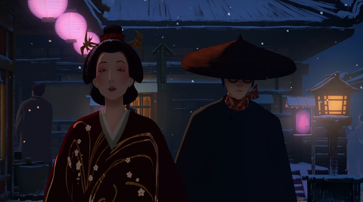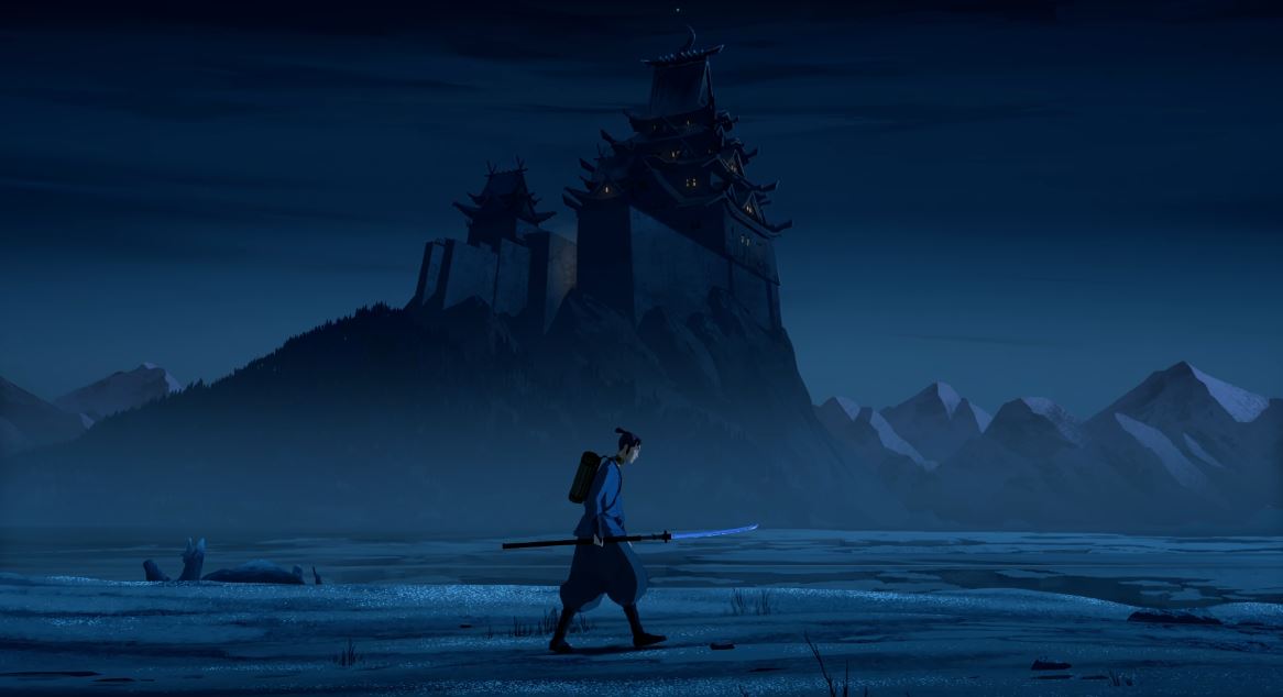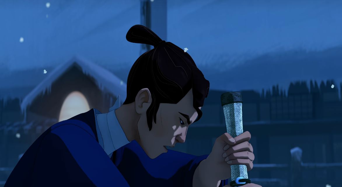 <푸른 눈의 사무라이>는 가상의 세계관을 가지고 있지만 일본 에도 시대를 배경으로 화려한 색채와 연출이 인상적인 작품입니다. 특히 3D 그래픽을 2D처럼 보이게 작업해 마치 실사 같으면서도 애니메이션 같은 독특한 느낌을 주는데요.