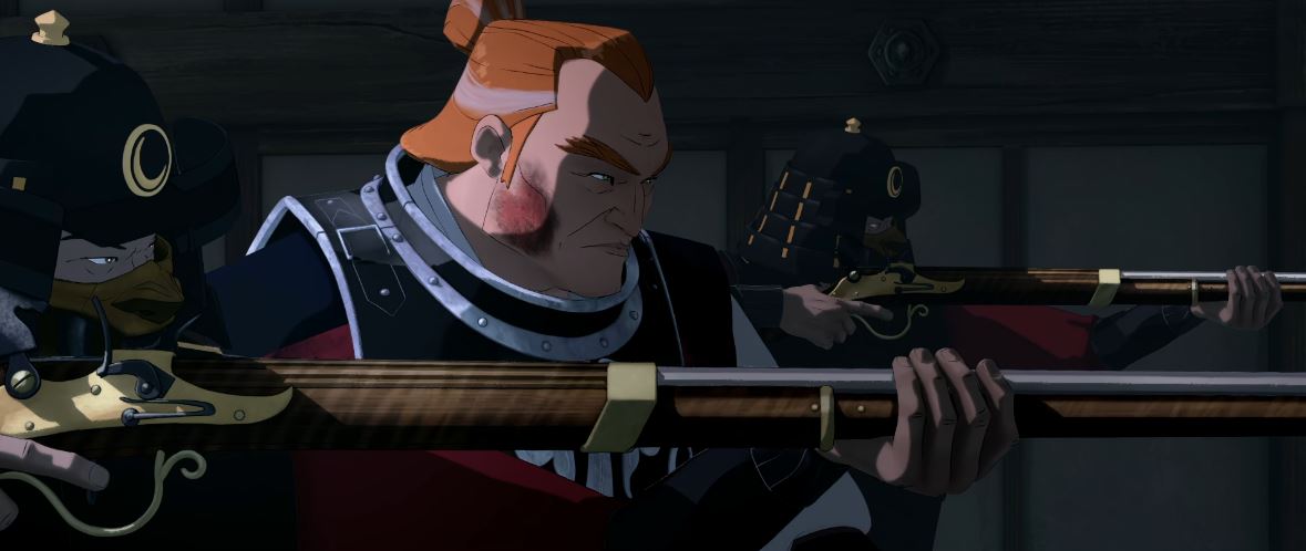 한편 파울러는 신도 헤이지와 함께 소총으로 무장한 부대를 이끌고 쇼군에게 당도합니다. 뒤늦게 타이겐이 이 사실을 쇼군에게 알리지만 이미 성 앞까지 군사들이 온 뒤였죠.