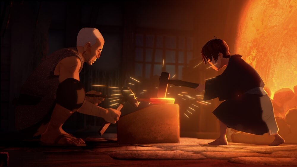 그녀는 자신이 여자라는 사실과 혼현이라는 사실을 숨기고 에이지 밑에서 칼을 만드는 법을 배워가죠. 그리고 찾아오는 사무라이들이 검을 쓰는 모습을 보며 검술도 함께 익히기 시작합니다.
