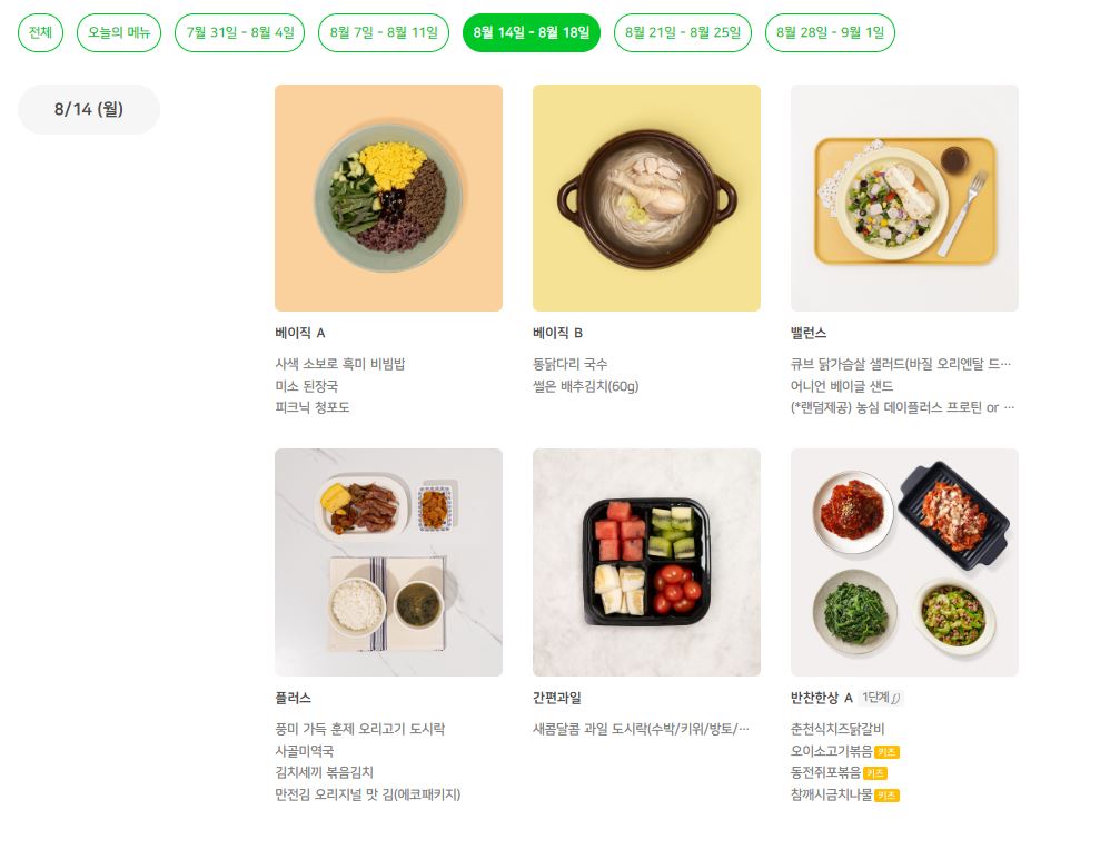 단점 : 점심 한 끼만 배송 (2개 시켜서 점심, 저녁 먹어도 되기는 함), 원하는 메뉴 품절 될 수 있음