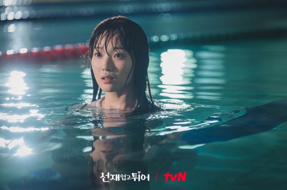 그리고 이때 선재가 탈의실에 들어오고 형구와 친구들은 황급히 도망칩니다. 차마 도망가지 못했던 솔이는 수영복을 들고 뒤늦게 도망치다가 선재에게 걸리고 선재와 함께 수영장 물에 빠지게 되죠.