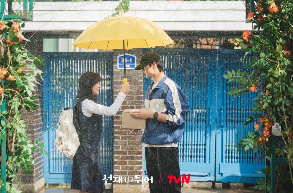 솔이를 껴안은 선재는 과거를 떠올립니다. 과거 선재는 택배기사로 오해해 자신에게 우산을 씌워주던 솔이의 모습에 첫눈에 반하게 되죠.