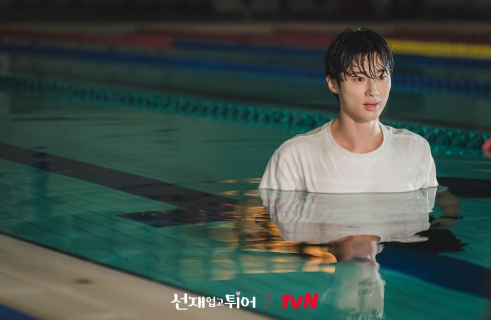그리고 이때 선재가 탈의실에 들어오고 형구와 친구들은 황급히 도망칩니다. 차마 도망가지 못했던 솔이는 수영복을 들고 뒤늦게 도망치다가 선재에게 걸리고 선재와 함께 수영장 물에 빠지게 되죠.