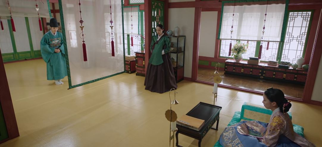 이인과 대화 후 영취정을 나오던 희수는 동상궁과 마주칩니다. 동상궁은 영취정에 들어가기 위해 별군직 행수인 주상화와 다투고 있었죠. 상화는 영취정은 그 누구도 왕의 허락 없이는 출입할 수 없다고 경고합니다. 동상궁은 자신은 출입할 수 없는데 신분도 모르는 강몽우가 출입할 수 있다는 점에서 질투심을 느끼죠.