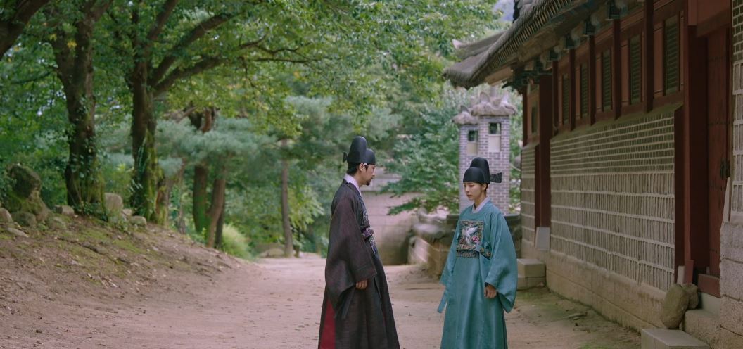 다음날 유현보 복직 사실을 알게 된 명하는 유현보가 몽우를 알아볼까 걱정되어 후원 뒷길로 그녀를 안내합니다. 함께 길을 가던 중 이인과 마주치게 되죠. 이인은 명하와 몽우가 가까운 것이 점점 더 신경이 쓰이기 시작합니다. 그러나 명하는 자신 때문에 몽우가 죽을 뻔했으니 자신에게 원한을 품고 있을 것이라 말하며 몽우와의 관계를 부정하죠.