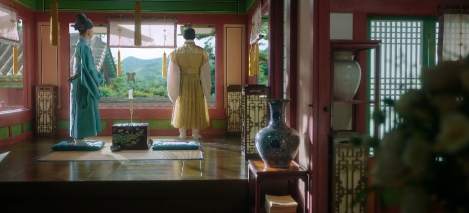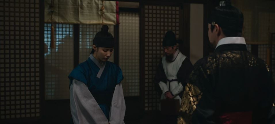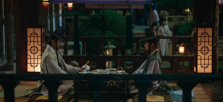 동상궁과의 합방 당일, 희수는 명하의 청으로 별군직을 따돌리고 기방에서 몰래 이야기를 나눕니다. 명하는 희수가 망설이고 있음을 알고 이인에 대한 마음을 접을 것을 경고하죠.