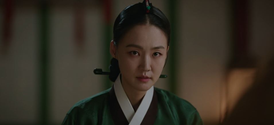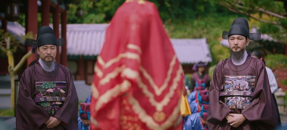 다음날 분영은 공주 대신 신부로 분장해 떠납니다. 그러나 공주가 나인으로 위장해 궁을 빠져나가던 중 왕대비전 상궁인 한상궁에게 들키고 말죠. 한상궁은 도망가는 나인을 수상하게 여기고 왕대비와 박종환에게 말하고 박종환은 신부가 바꿔치기되었음을 알고 곧장 사신의 뒤를 쫓아갑니다.