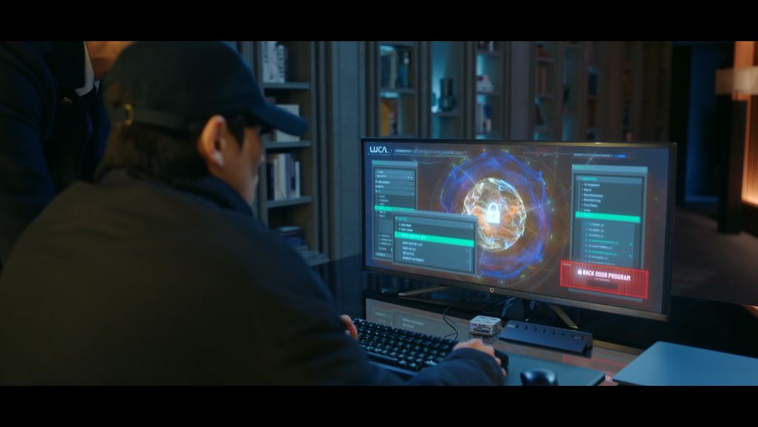 찬성이 정신이 팔려 있는 동안 도혁은 몰래 루카를 해킹합니다. 그리고 도혁은 이휘소의 옛 동료들을 데리고 생중계 현장을 찾아가 인적검사를 요구하죠.