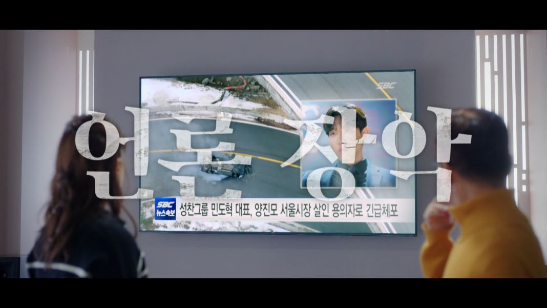 매튜는 본격적으로 도혁을 살인자로 만들기 시작합니다. 먼저 언론을 장악하고 자신이 목격자인 척 경찰이 진술하죠. 매튜는 가곡지구 개발 핵심에 도혁과 성찬그룹이 있으며 자신은 도혁이 납치한 진모의 아이들을 구조했다고 설명합니다.