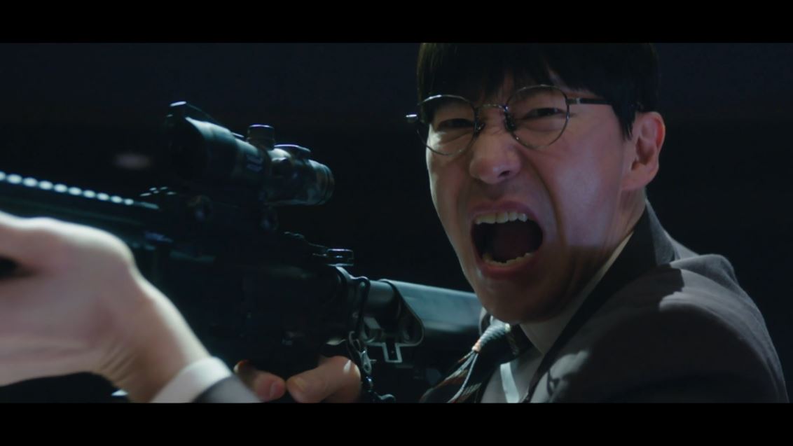 도혁은 이미 매튜의 지시로 양팔이 묶인 채 폭행당한 상황. 매튜는 도혁을 찾아가 그를 비웃지만 도혁은 당당한 태도로 일관하죠. 화가 난 매튜가 도혁을 총으로 쏘려는 순간 강검사가 나타나고 당황한 매튜는 그대로 자리를 떠납니다.