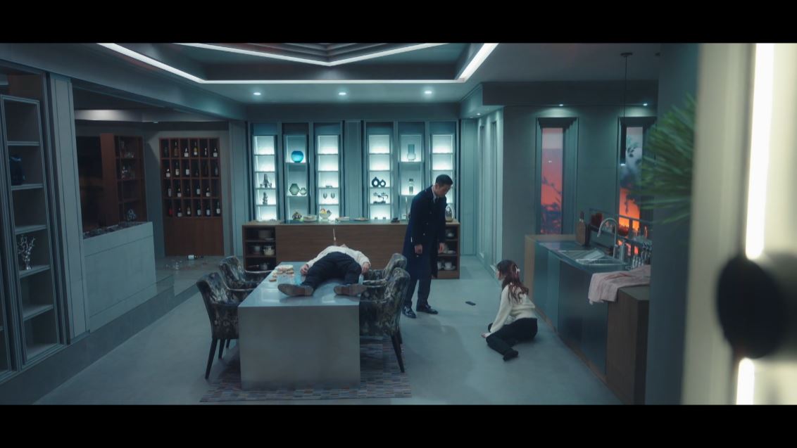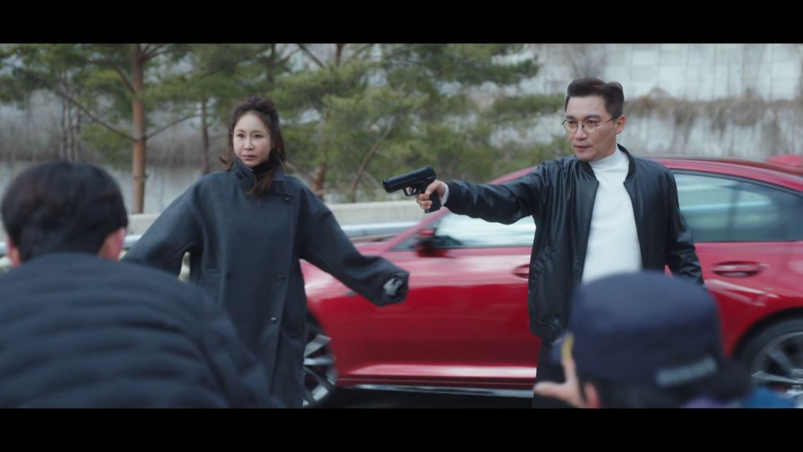 도혁은 이미 매튜의 지시로 양팔이 묶인 채 폭행당한 상황. 매튜는 도혁을 찾아가 그를 비웃지만 도혁은 당당한 태도로 일관하죠. 화가 난 매튜가 도혁을 총으로 쏘려는 순간 강검사가 나타나고 당황한 매튜는 그대로 자리를 떠납니다.