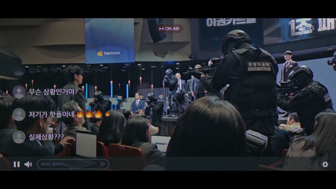 매튜의 말에 도혁은 매튜와 총리가 나눈 비밀톡을 루카를 통해 공개합니다. (루카는 도혁의 부탁으로 명지가 조종하고 있었죠) 제2의 방다미로 만들자는 대화를 본 기자들은 더욱 분개하죠.