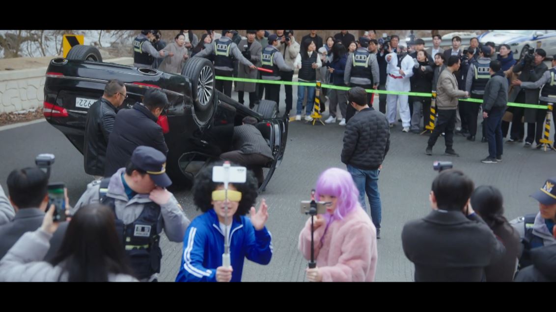 매튜는 언론 플레이를 위해 현장 검증을 진행시킵니다. 그리고 현장에 가짜 뉴스를 퍼뜨리는 유튜버들을 모두 불러내죠. 도혁은 아무렇지 않은 척 현장 검증을 진행합니다.
