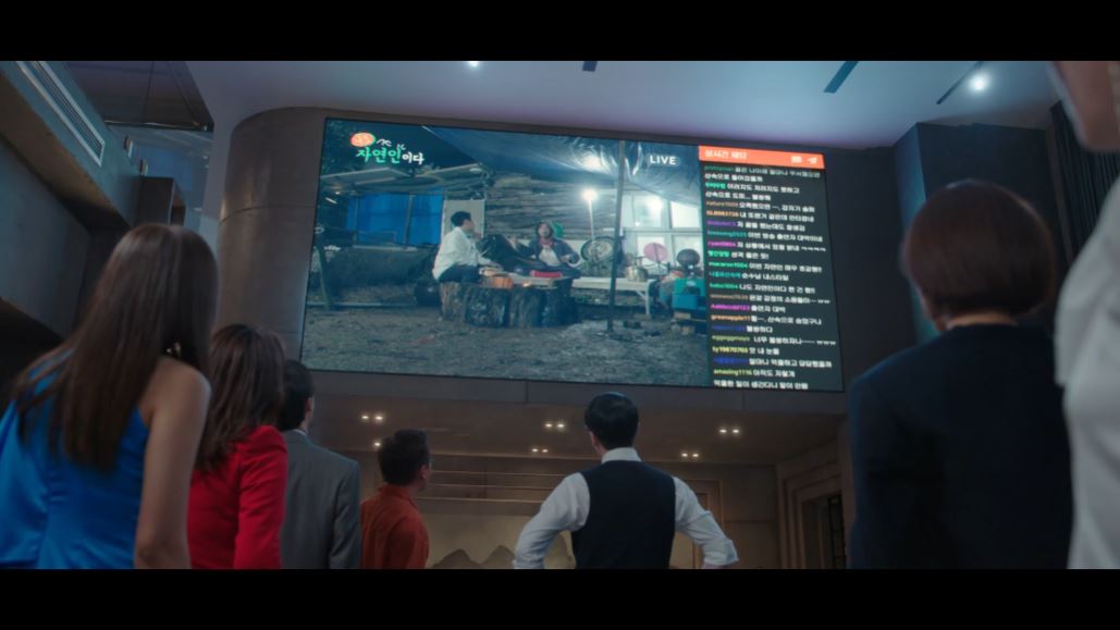 그리고 그 순간 TV에서 생중계로 도혁이 등장합니다. 도혁은 라이브 방송을 통해 오랜 시간 숲에서 숨어 산 것처럼 인터뷰를 진행하죠. 여기에 도혁은 심 회장의 아들이 아니라며 자신은 이휘소(매튜)와 똑같이 가족을 사고로 잃은 사람일 뿐이라 말합니다.