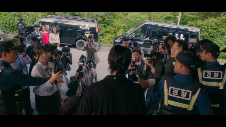 도혁은 심준석이 한나를 죽이려고 한다며 대중에게 한나의 얼굴을 기억해 달라고 호소합니다. 그리고 매튜를 스쳐 지나가며 더 이상 한나를 건드리지 말라고 경고하죠.