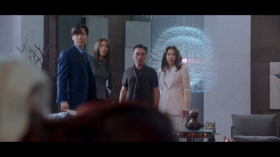 뒤늦게 라희와 주란, 철우가 별장에 도착하고 3명 앞에 기탁이 나타납니다. 라희는 이미 알고 있었지만 놀라는 척하죠. 기탁은 도혁의 뒤에 있는 것이 자신이며 현재 경찰이 심준석을 잡기 위해 오고 있다고 말합니다.