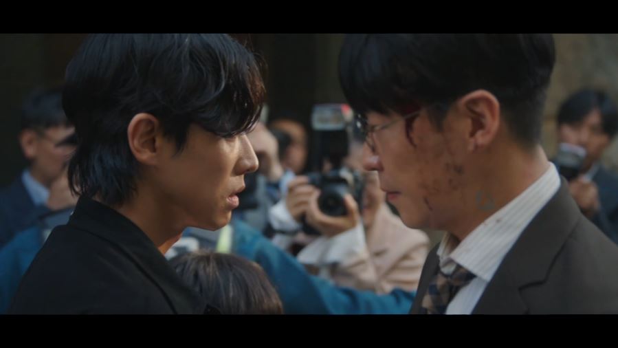 도혁은 심준석이 한나를 죽이려고 한다며 대중에게 한나의 얼굴을 기억해 달라고 호소합니다. 그리고 매튜를 스쳐 지나가며 더 이상 한나를 건드리지 말라고 경고하죠.