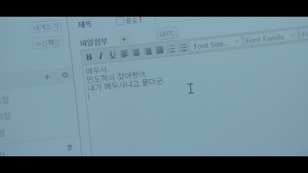 도혁이 떠나고 찬성은 메두사에게 도혁이 찾아온 사실을 메일로 전달합니다. (메두사는 라희일 테니 라희의 조력자가 찬성인 걸까요?)