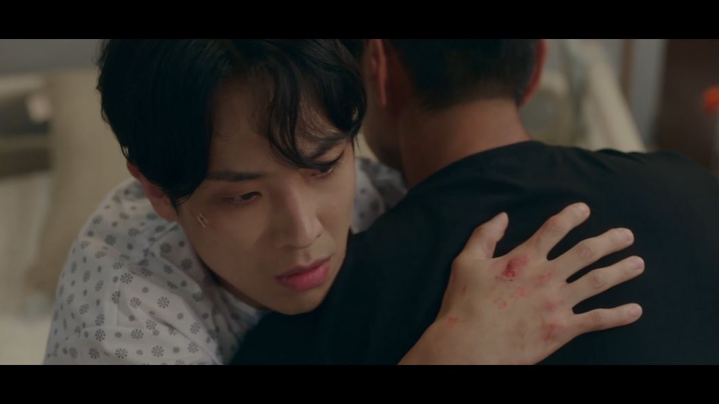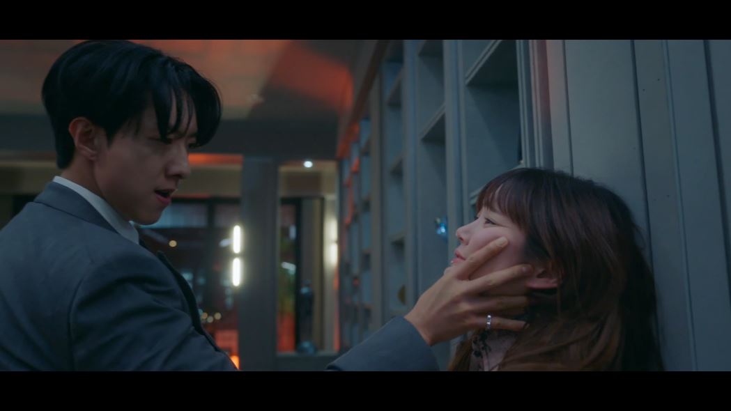 찬성은 도혁과 왜 만난 것인지 추궁합니다. 그리고 모네가 아무 말도 하지 않자 모네를 때리고 협박하기 시작하죠. (도망치는 모네를 붙잡고 본색을 드러내는 찬성.) 그러나 그 순간 도혁이 나타나 찬성을 밀어내고 모네를 구해줍니다.