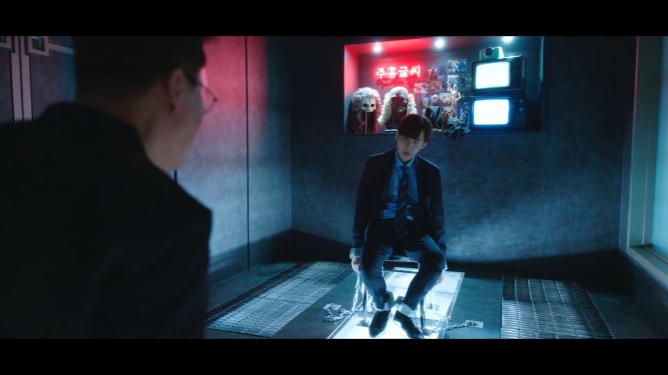 정신을 차린 악인들은 온몸이 묶인 것을 발견합니다. 각 방에는 주란과 명지, 철우와 진모, 매튜와 도혁이 갇혀 있었죠. (매튜는 자신이 만들어둔 지하 감옥에 자신이 갇힌 것을 깨닫죠.)