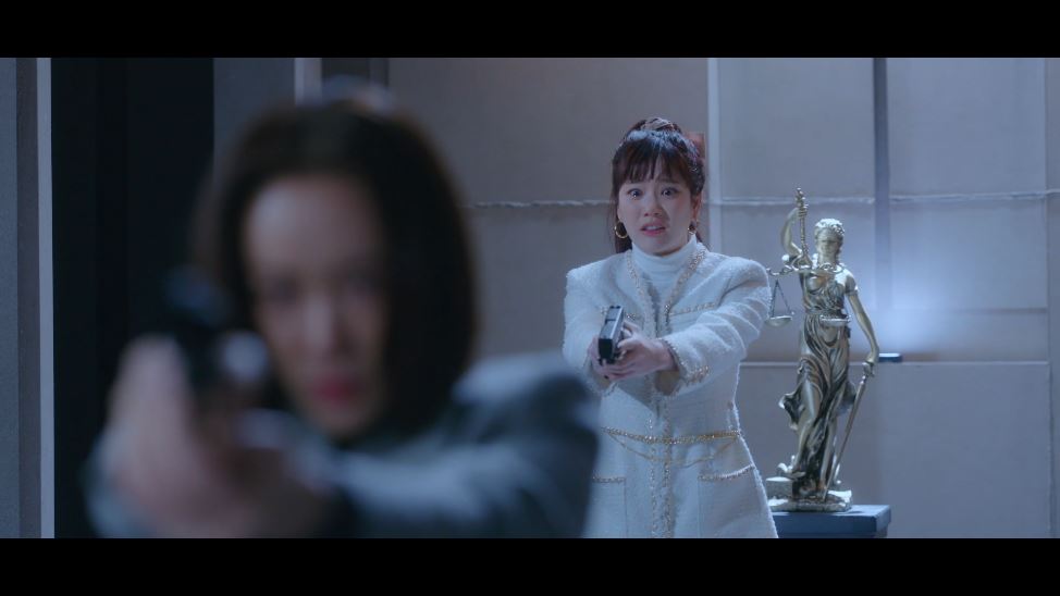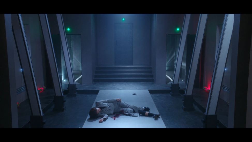 라희는 감옥 출구 앞에서 권총을 들고 기다립니다. 누구든 권총을 쏘고 나오면 죽일 생각이었죠. 싸움이 계속되고 도혁은 매튜의 목을 졸라 기절시킵니다. 돌아서는 도혁에게 매튜는 총을 쏘죠. (기절한 척한 것)