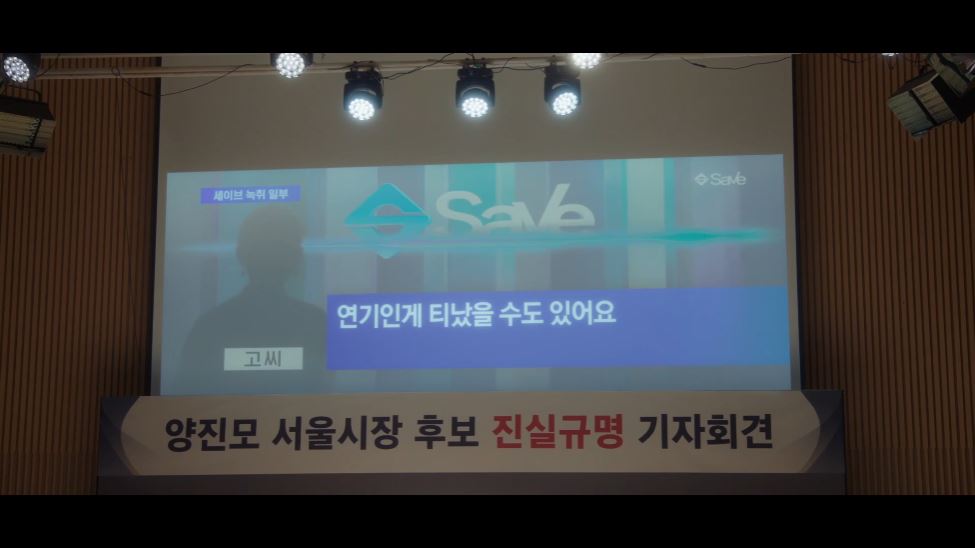 그러나 그 순간 세이브가 명지와 진모의 녹취록을 공개합니다. 이는 라희와 함께 있을 때 위장 부부인 것이 들키면 어떡하냐고 이야기했던 순간을 담고 있었죠. 기자회견장은 아수라장이 되고 명지와 진모는 메두사가 라희임을 눈치챕니다. 진모는 매튜에게 전화를 걸어 메두사의 정체가 라희임을 말해주죠.
