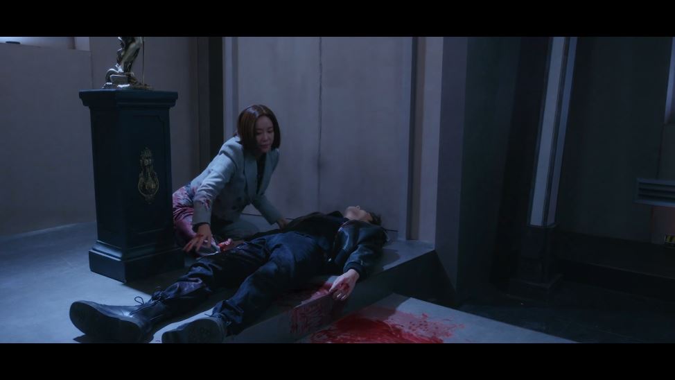 그러나 이때 총상을 입은 도혁이 나타납니다. 도혁은 라희 앞에서 정신을 잃고 쓰러지죠. 이제 폭발까지 얼마 남지 않은 상황. 라희는 도혁을 구하기 위해 다친 몸을 이끌고 도망치기 시작합니다. 그리고 필사적으로 도혁을 숨겨진 비밀 공간에 넣어두고 문을 닫아버리죠.