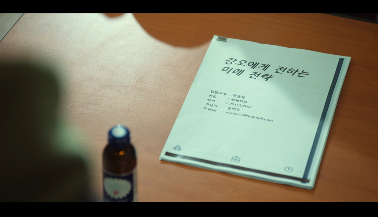 한편 경제학과 교수 '채동욱'은 태오가 제출한 리포트에 관심을 가집니다. 태오는 상생협력센터라는 기관을 세워 강오가 돈을 벌 수 있는 전략을 리포트로 제출하죠. 채동욱 교수는 이를 자신이 한 것인 양 강오 그룹 강중모 회장의 둘째 아들, 강성주에게 보여줍니다.