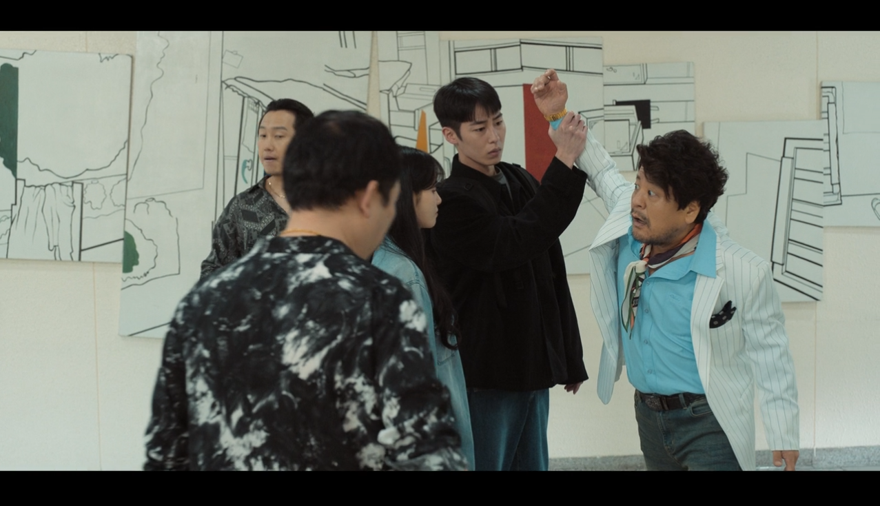 얼마 후 조폭들이 혜원을 찾아옵니다. 그들은 혜원의 엄마가 자신들의 돈을 들고 도망쳤다며 혜원에게 시비를 걸죠. 조폭 중 한 명이 혜원을 때리려고 하자 태오가 나타나 혜원을 구해줍니다.