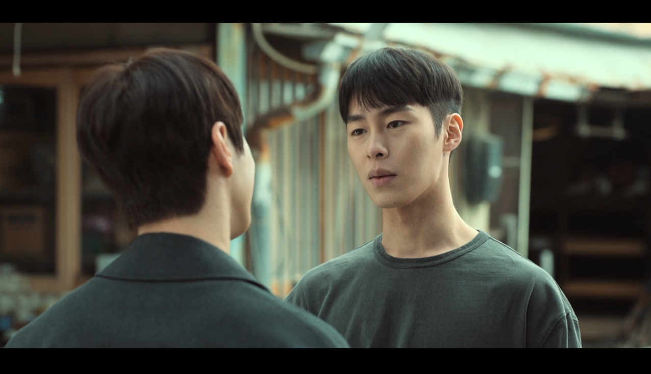 다음날 태오는 편의점 알바를 구하다가 인하가 편의점과 과일가게에서 물건을 훔치는 걸 목격합니다. 하지만 재벌집 아들이라는 이유로 편의점 점원도 주변 사람들도 아무도 인하에게 뭐라 하지 않는 상황. 동네에서 태오를 처음 본 인하는 자신을 빤하게 쳐다봤다는 이유로 태오를 찾아가 시비를 걸죠.