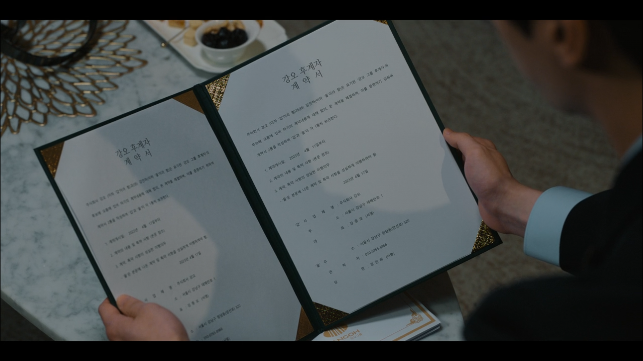 강 회장은 이를 승낙하고 인하에게 계약서를 전달합니다. 인하는 망설임 없이 계약서에 바로 사인하죠. 그리고 다음날 강 회장은 금석을 찾아와 모든 것이 자신이 꾸민 일임을 알립니다.