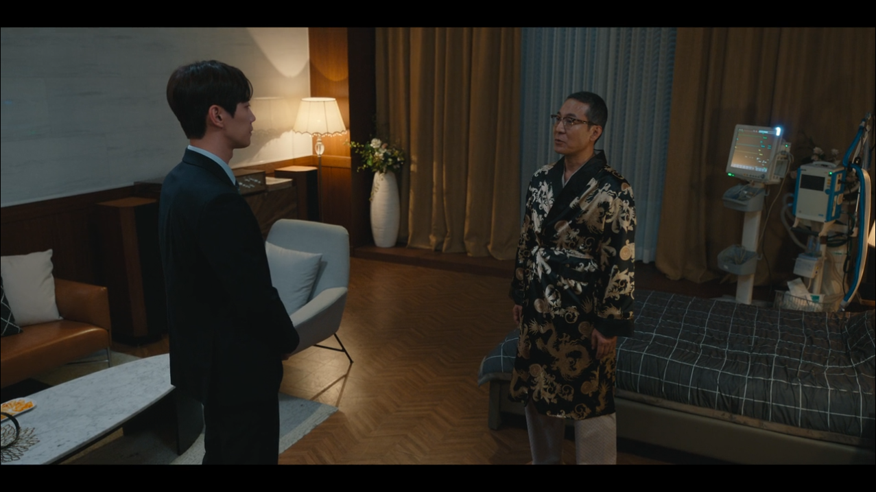 분노에 찬 강 회장은 혁진에게 지금 당장 자신의 방으로 오라고 명령하죠. 강회장은 혁진에게 상생협력센터를 회장실 직속으로 옮길 생각이라고 말합니다. 그리고 극비 상황이니 지금 바로 회장실에 모여 회의를 시작하자고 말하죠.