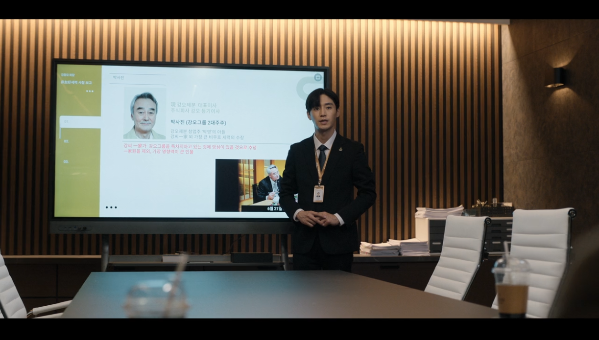 다음날 인하는 태오의 자리였던 미래전략실 제1본부 본부장으로 오게 됩니다. 그는 태오가 그동안 해왔던 업무를 대신하게 되죠. (태오는 미래전략실이라는 이름 아래에서 강중모 회장을 싫어하는 세력들을 사찰하고 감시하고 있었죠)