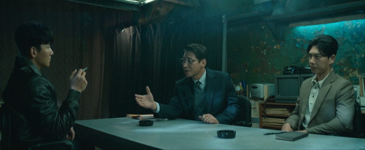 장경출과 그 일당들을 모두 제압했지만 그 과정에서 친구였던 권태호가 죽게 되죠. 기철은 부산 출신의 전국구 보스인 손동혁(강남연합 위 조직)에게 찾아가 경출이 재건파와 손을 잡고 도망갔다고 거짓말합니다. 그렇게 강남연합을 자신에게 달라고 요청하죠. 그 조건으로 매달 엄청난 상납금을 내기로 합니다.
