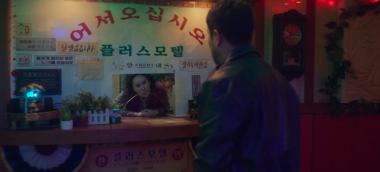 그러다 우연히 복도에서 지희와 한 남자가 다투는 모습을 보게 됩니다. 커피 배달 외에 다른 걸 요구하는 남자에게 지희는 강하게 맞섭니다. 큰 소란에 모텔 방 손님들이 모두 복도로 나와 이 모습을 바라보게 되고 지희는 자리를 떠납니다.
