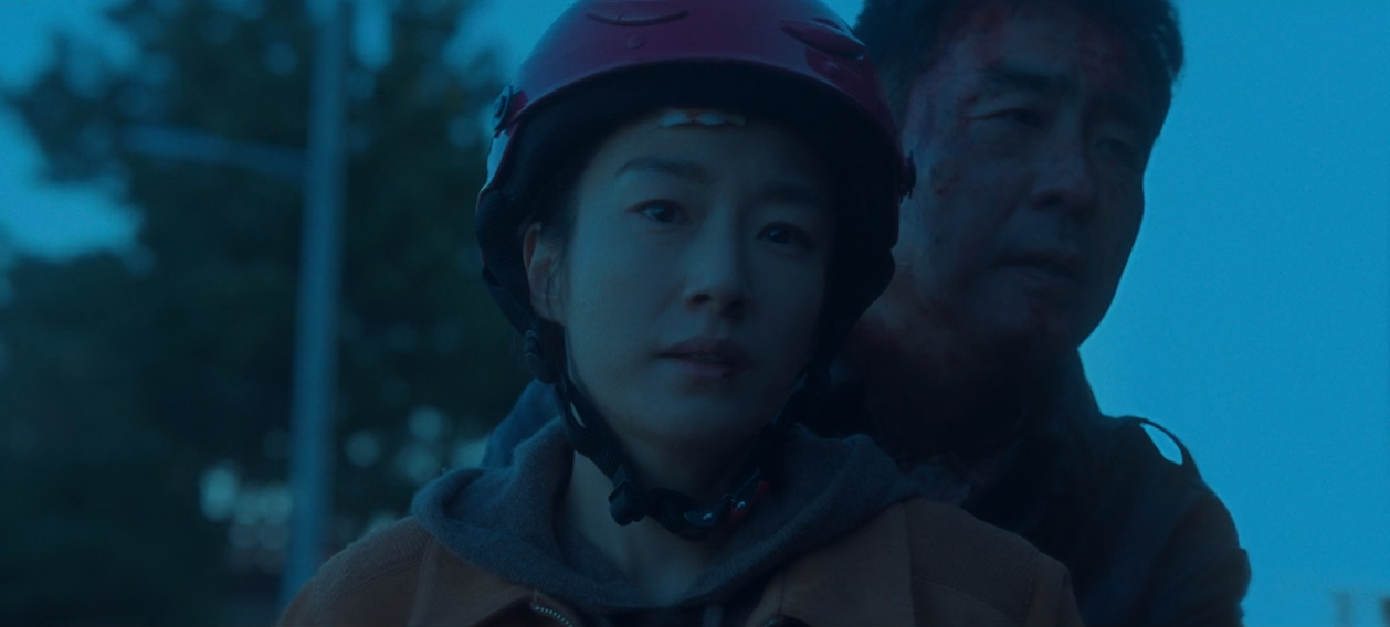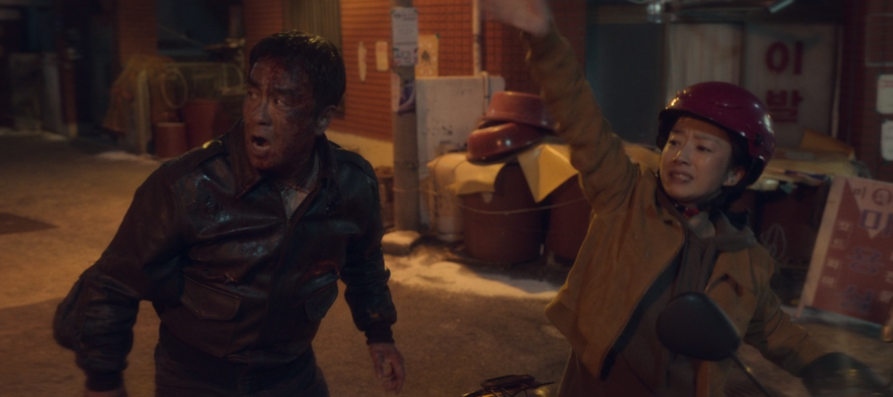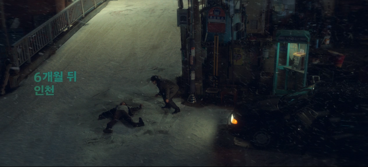 몇 시간 동안 골목을 헤매던 주원은 다시 지희와 마주칩니다. 지희는 아직도 길을 찾아 헤맸냐며 괜찮냐고 물어보죠. 그녀의 말에 주원은 길을 못 찾겠다고 펑펑 울며 말합니다. (과거를 배신당해 물속에 버려진 순간을 회상하며 길을 헤매던 주원은 실제로 길을 잃은 것과 조직으로 버림받고 길을 잃은 인생을 생각하며 울었던 것 같습니다.)